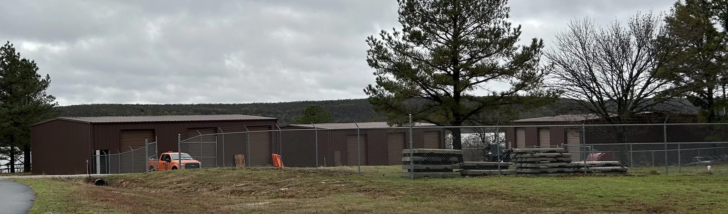 This is the parking lot. There is quite a bit of parking lot. There is a berm on the eastern side of the parking lot. Across the street from our site is an outdoor gun range. It is a well designed and set up gun range. However, the berm on the east side of the parking lot is an additional safety precaution just in case. You may hear gunfire while in this area (or on other parts ot the site) but as long as you stay on our side of the berm you will not need to worry about the gun range.